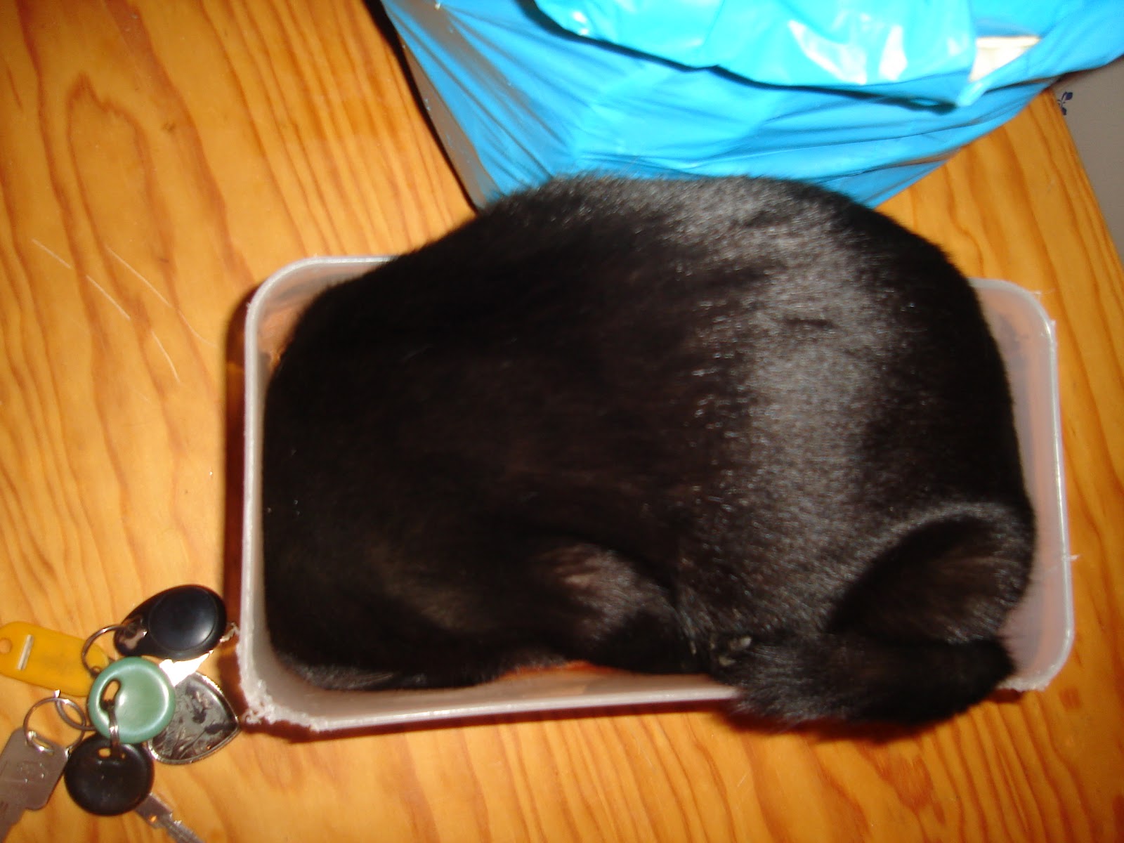 Lembram-se de eu dizer que o Rex dorme fora do sitio dos cães à noite, pois consegue saltar sempre a rede? Pois, costuma dormir no tapete que está na imagem... Ontem à noite dei com ele em cima da mesa, dentro do caixote de madeira, que é uma cama com 3 divisões improvisada para os gatos que gostam de dormir na rua :)